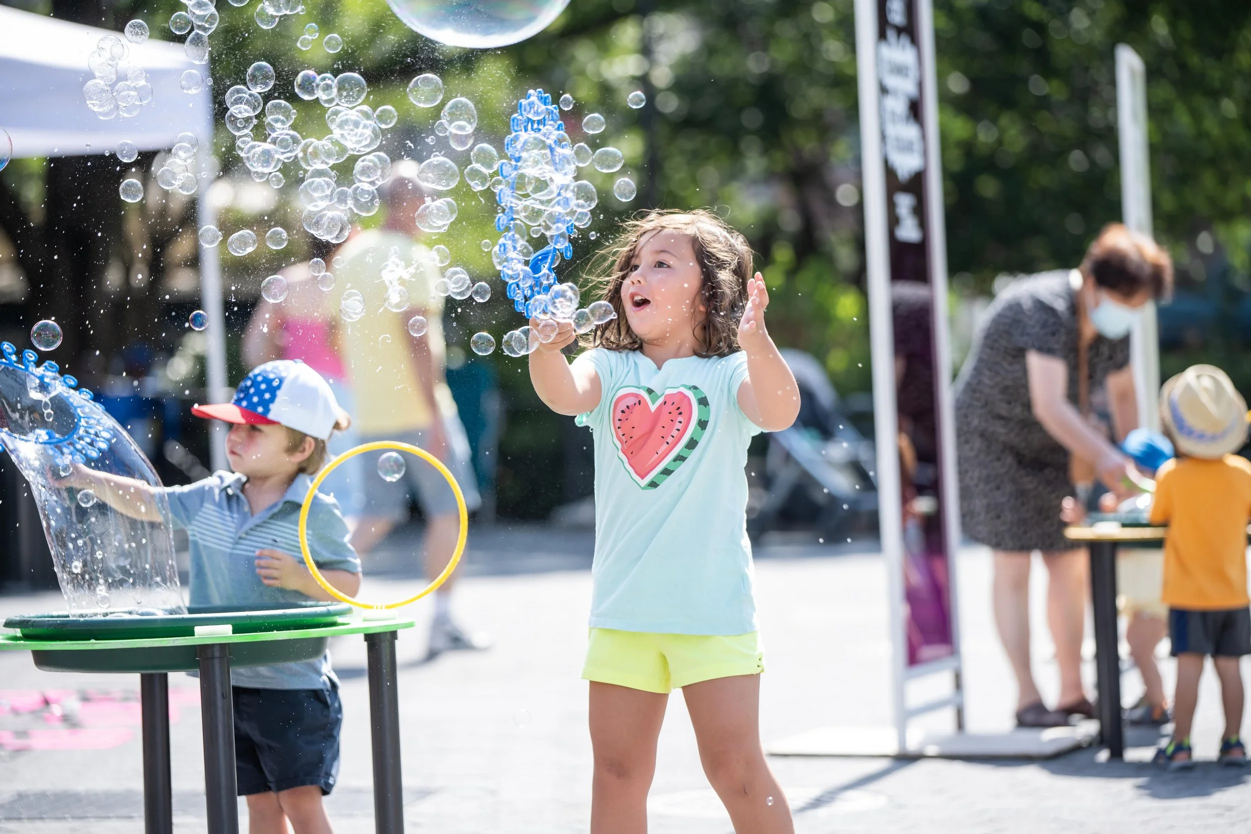 The kids pavilion is one of our summer staples! This year, we have both morning and afternoon children’s programming on the Center Lawn and West Plaza between 9 a.m. and 3 p.m. Start the morning off with bubbles, brought to you by the Gazillion Bubbles Show. Any aspiring artists can head over to our Arts + Crafts station, where we offer Union Square-themed coloring sheets, so anyone can color in and design the Union Square of their dreams. From 9:30 a.m. to 10:15 a.m., kids can join in on a ton of fun rotating activities including Cinderella Samba by the CityParks Foundation, interactive art and science programs offered by City OWLets, alongside fun fitness and exercise challenges from Zing! Don’t forget about kids yoga, organized by Karma Kids Yoga, where children can learn animal-like yoga poses while listening to their favorite stories. In the afternoon, buckle up for kid-friendly skateboarding clinics with the Skate-Everything school, led by lead coach O’Neal Ellerbe.